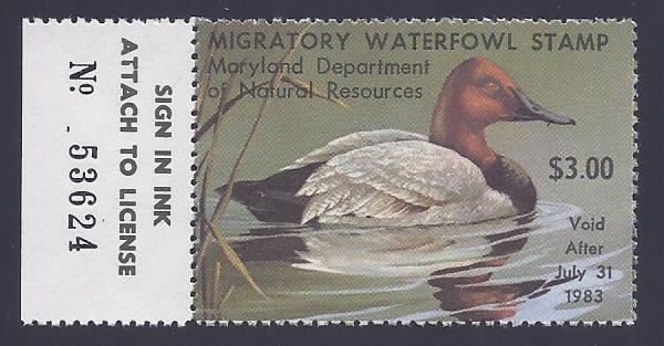 The wildlife paintings of Roger Bucklin show up on stamps, and all sorts of outdoor related items. Ducks and other waterfowl are the subjects for which he is most well-known. The first image below is the Maryland Duck Stamp for 1982 which is the 9th issue for the State of the Waterfowl Duck Stamp. It is of a Canvasback Duck