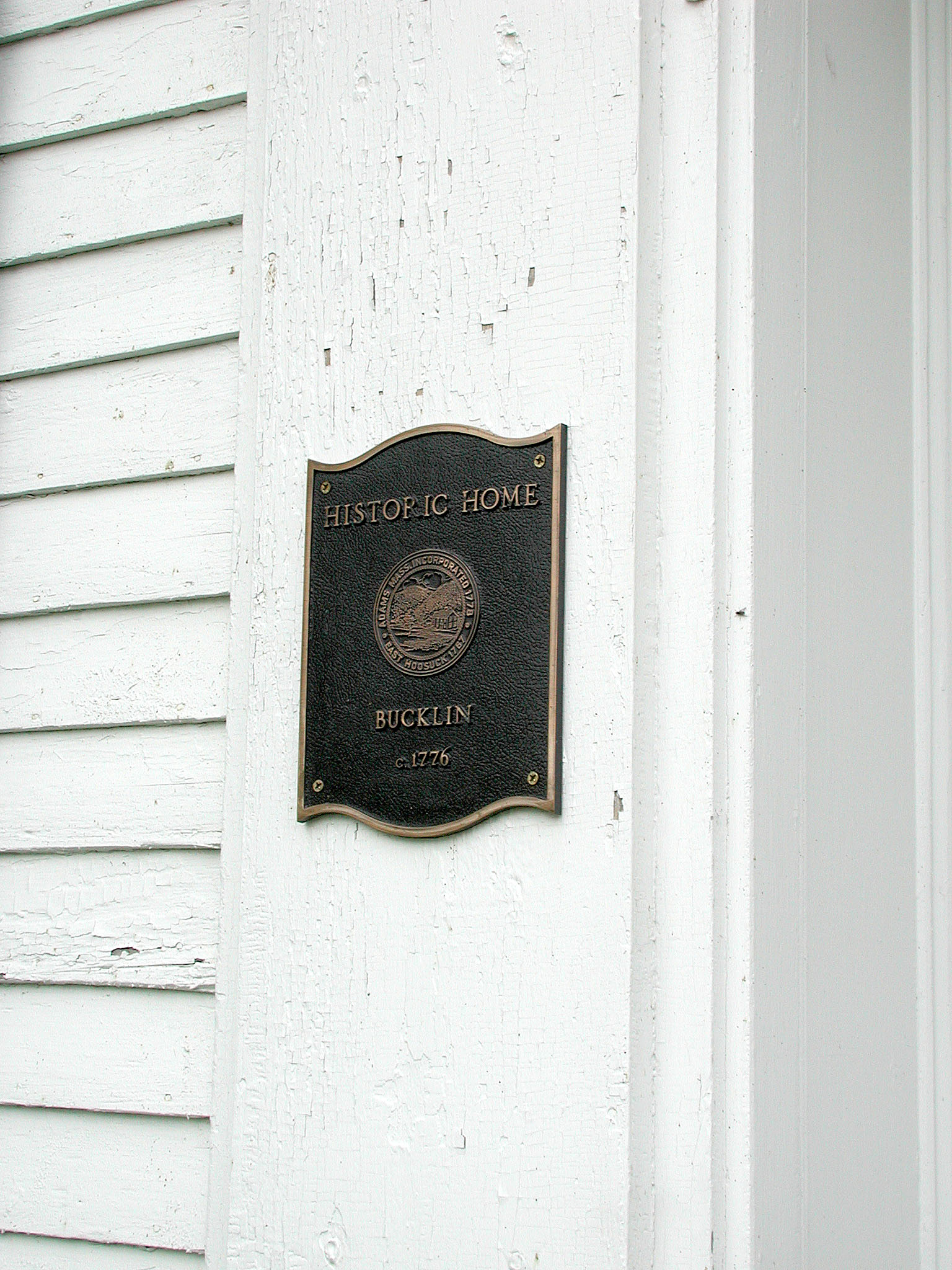 Jemeriah Bucklin Home,171 Bucklin Road, Adams, MAThe Bucklin family was one of the Baptists who originally settled in the Stafford Hill area they named New Providence. Jeremiah bought this property in 1775. His son, John, later moved to Center Street where he was involved in early manufacturing. This house is unique for its preserved beauty and idyllic setting. The property is a lovely home, built in 1776, and still used as a farm today after over 200 years of operation. Obviously, from the size of the home, and the choice land he purchased, Jeremiah was a man of substantial assets.