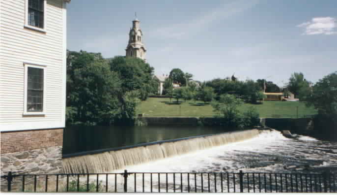 The View from Slater Mill A 1999 view looking across the Pawtucket River, RI from the area of the historic Slater Mill, the point of the start of the Industrial Revolution in America, to the present Congregational Church and what was Bucklin land in the 1600’s.